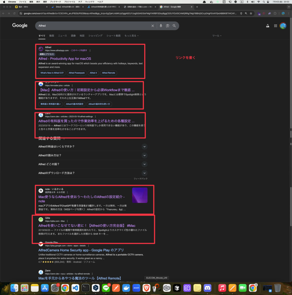 はじめに、「Alfred」という言葉をGoogle(グーグル)で検索してみます。すると、いろいろなブログや記事が出てきます。